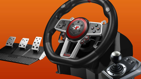 The electromagnetic rotation sensor improves turning capacity, reduces latency and avoids the dead angle. The clamps and suction cups give perfect stability and support.It includes manual gear shifting for a...